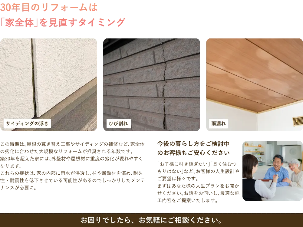 高千穂のリフォームでは、お客様専任の担当者が一人で対応するだけではなく、工事完了までの一連の状況を確認する体制を整えております。気になることがあれば、遠慮なく会社にご連絡ください。