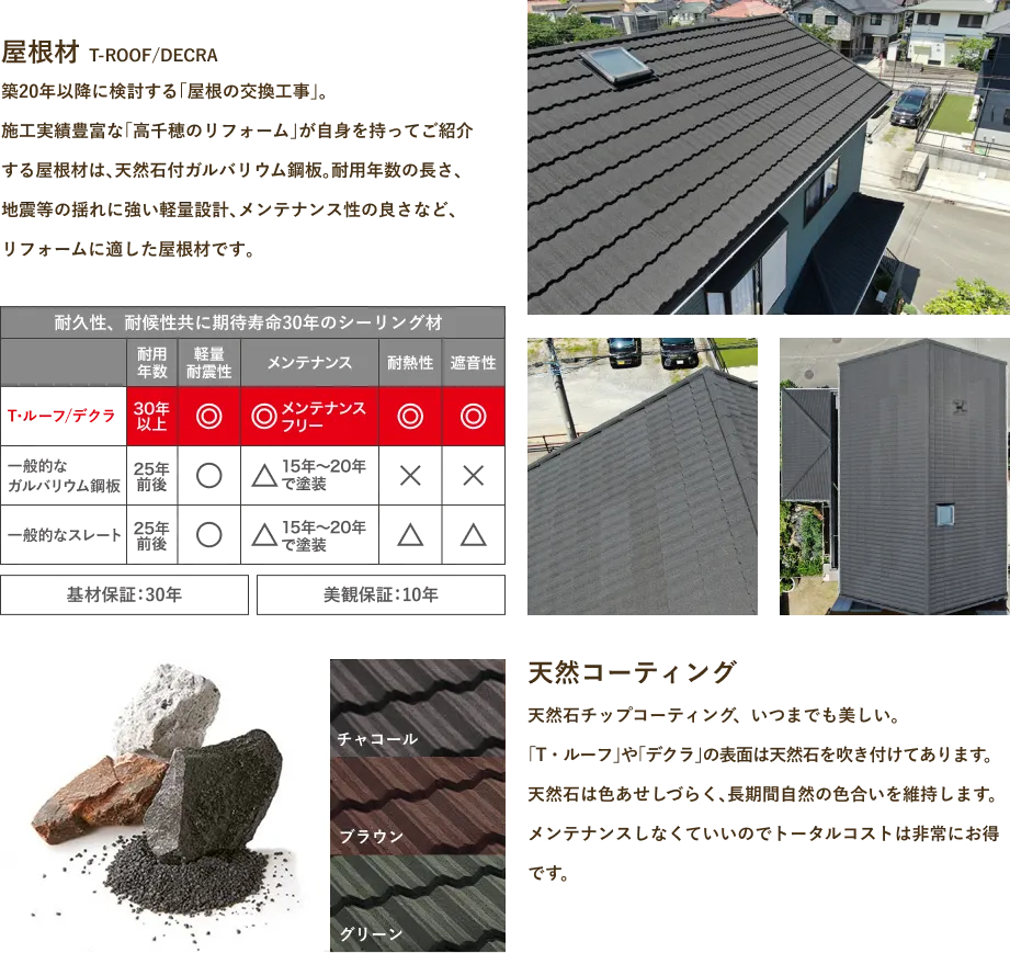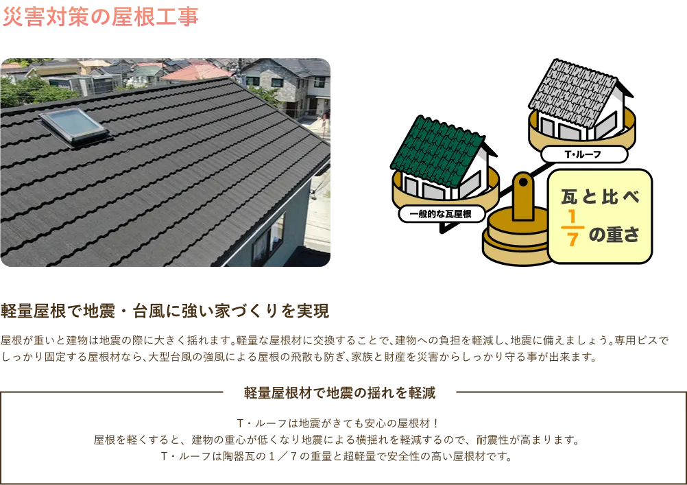 おすすめの軽量屋根材「T・ルーフ」---- 30年基材保証・10年施工保証