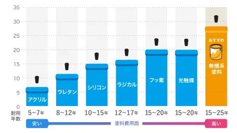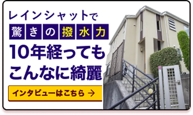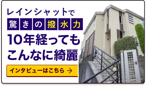 高千穂の無機系塗料「レインシャットシリーズ」。水をはじくのに通気性もある画期的な外壁塗料です。無機系塗料は数ある塗料の中でも耐用年数が長い塗料です。 発売以来35年以上、お客様にご愛顧いただいております。中には、2回以上ご採用いただくリピーターのお客様も多数いらっしゃる塗料です。Q